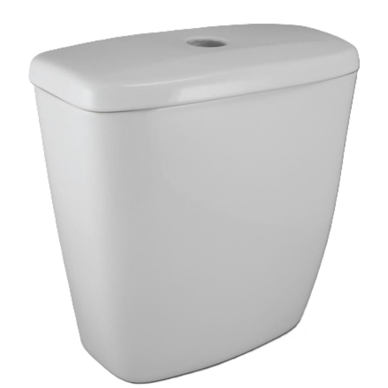 Белый керамический смывной бачок с крышкой для унитаза Sanita Эталон, отверстие для наливного механизма расположено снизу справа, без арматуры