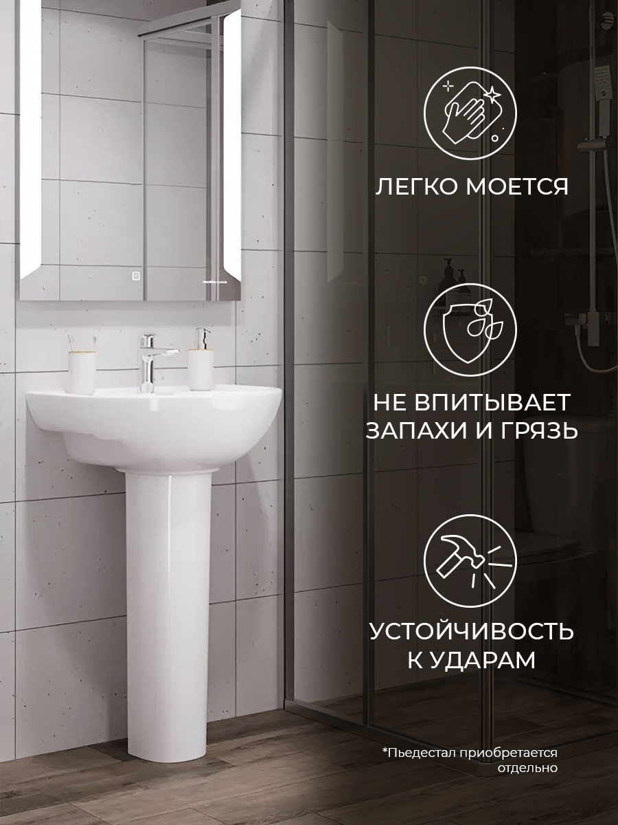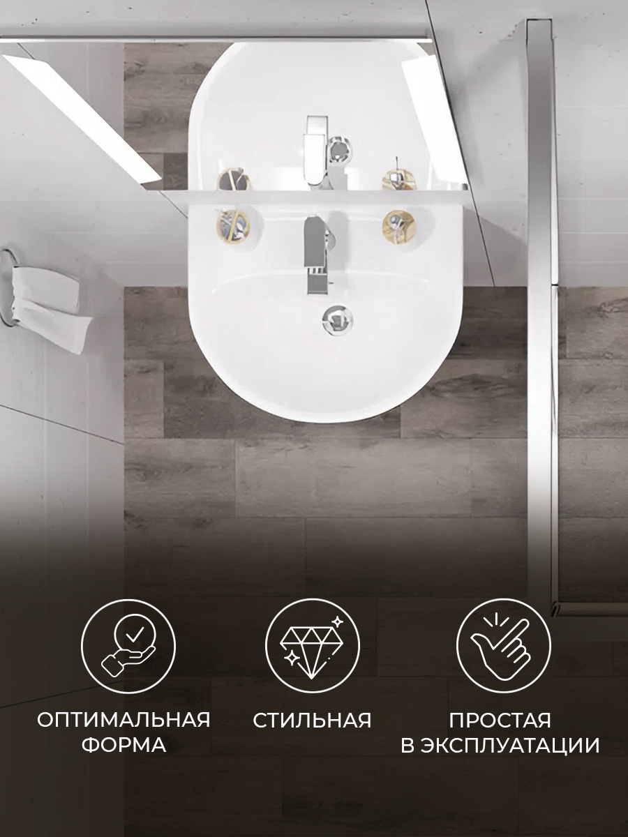 Комментарий: Аккуратная, компактная и стильная раковина для ванной. Монтаж не сложный. Выглядит отлично, моется легко. Слив подошел самый обычный, купленный в Леруа. Единственное бы порекомендовал покупать смеситель пониже, чтобы сильно вода не разбрызгивалась. Раковина не большая.