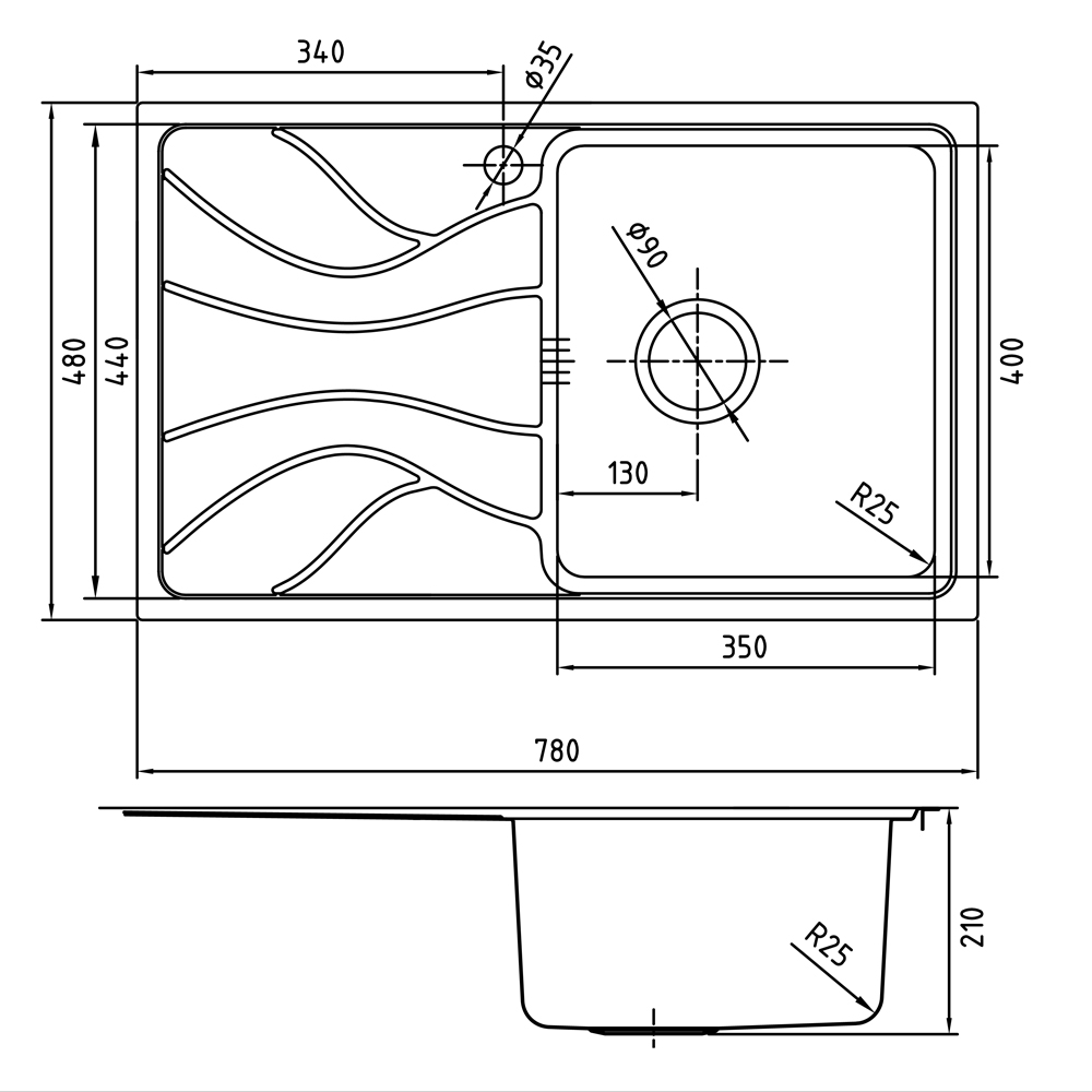 • Диаметр слива, см