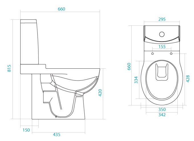 Межцентровое расстояние отверстий для креплений бачка Сантек Аллегро к чаше унитаза 155 мм