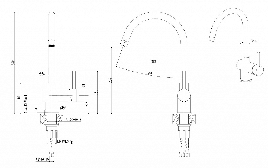 • Вращение излива