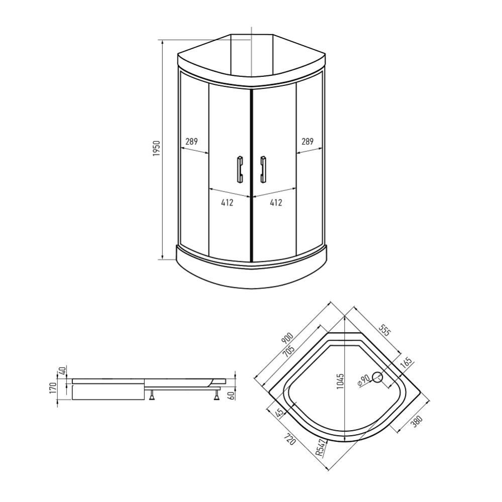 • Душевые кабины угловые симметричные