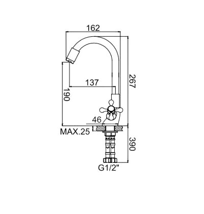 • Высота излива, см