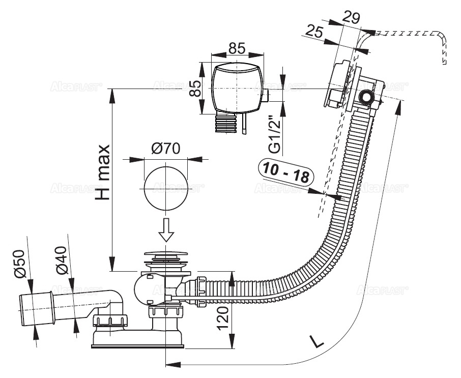 • Диаметр слива, см
