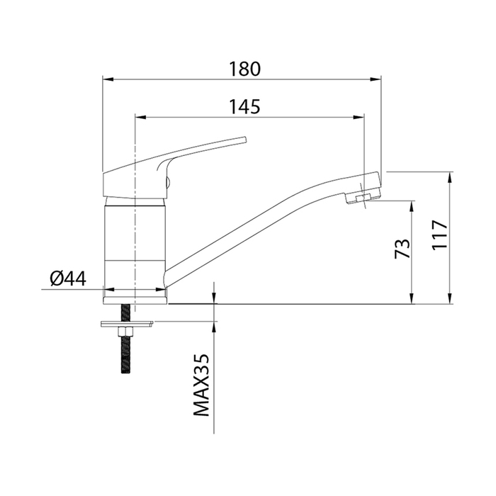 • Диаметр монтажного отверстия, мм