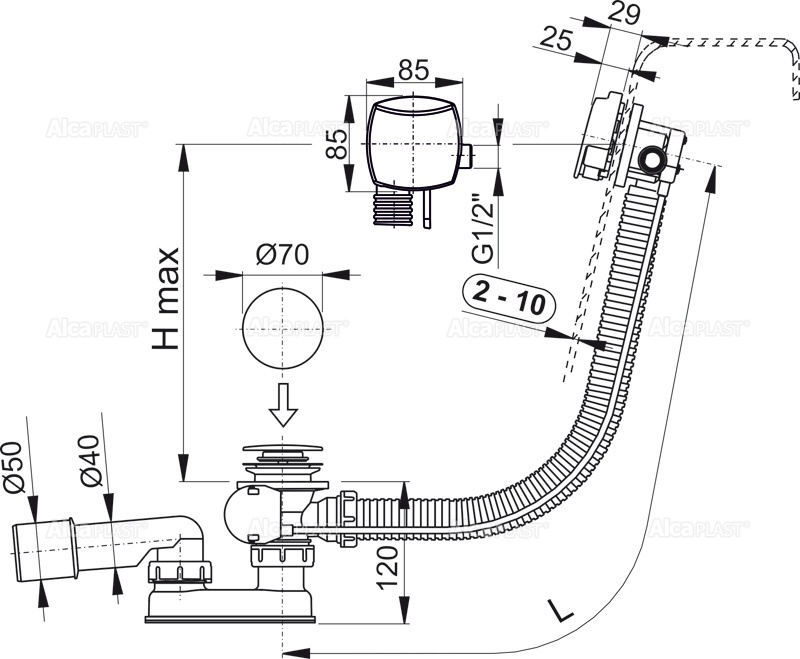 • Диаметр слива, см