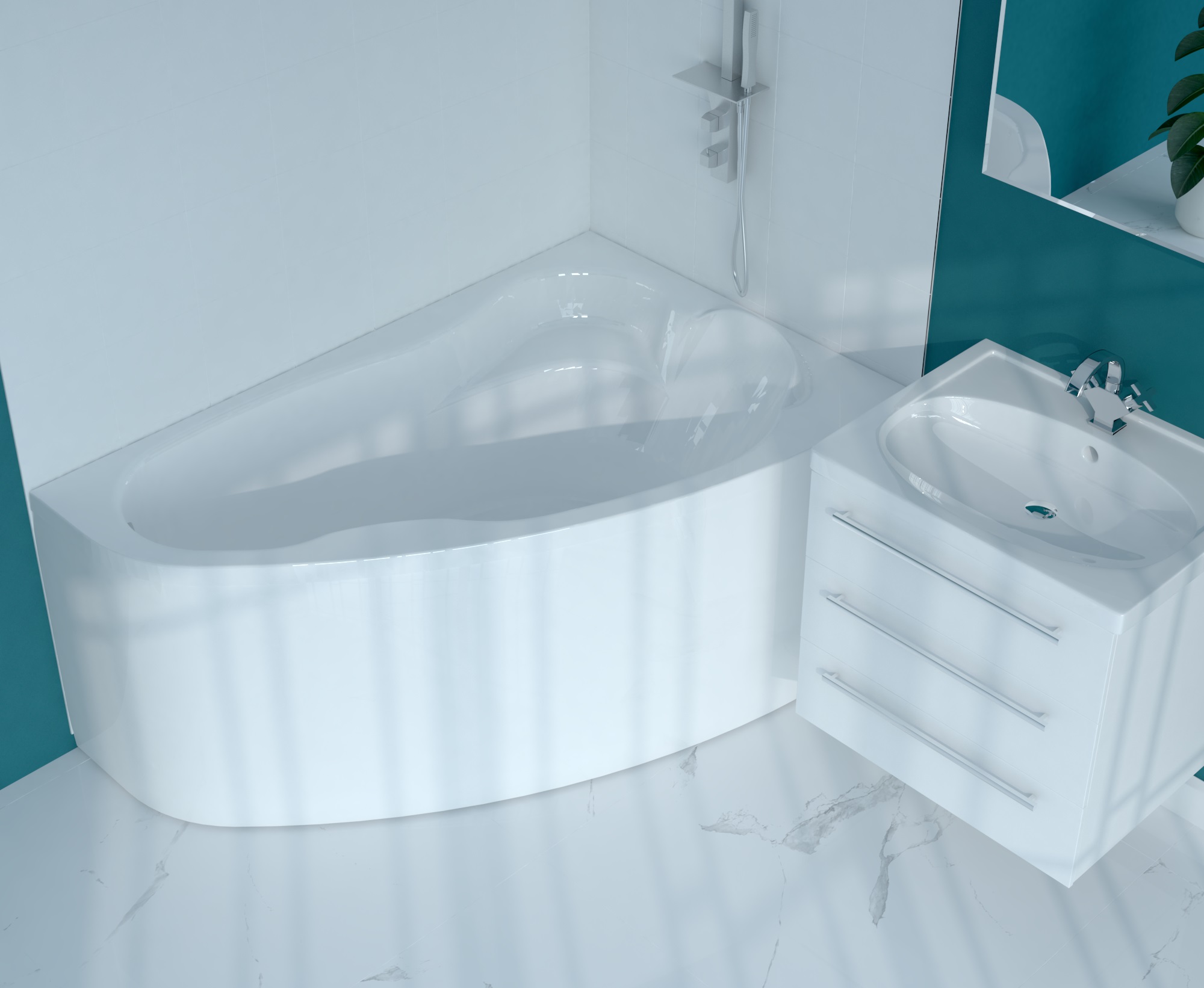 Ассиметричная угловая ванна, которая привлекает к себе внимание оригинальным многоуровневым дизайном чаши. Это та модель, в которой эстетика не уступает функциональности, а вместе они образуют поистине великолепное, заслуживающее внимания сочетание. Ванна изготовлена из литьевого сантехнического акрила, она длительное время сохраняет свою практичность и привлекательный внешний вид. К преимуществам данной модели можно отнести: - увеличенная зона спины - комфорт и профилактика болезней позвоночника; - встроенный подголовник - ортопедическая поддержка шейного отдела позвоночника; - большая глубина - возможность полностью погрузиться в теплую воду, меньше брызг; - сиденье-полка 2 в 1 -используется для хранения аксессуаров или удобства и безопасности в ванне; - экономия пространства -  эргономичное использование площади ванной комнаты; - удлиненная купель в области ног - комфортное расположение тела в ванне; - качественный материал, который прослужит долго Рама, панель, слив-перелив приобретаются отдельно