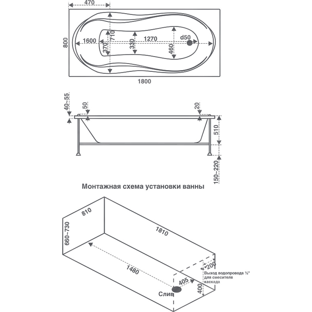 • Форма ванны