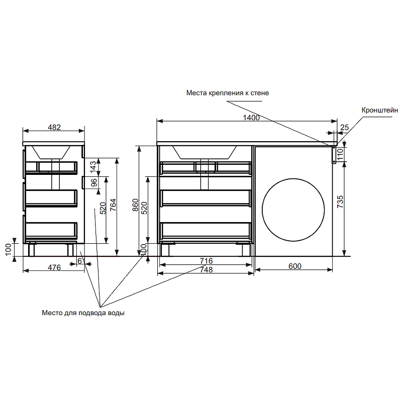 • Раковины над стиральной машиной