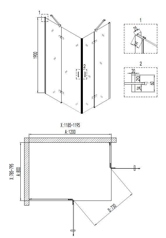 • Душевые кабины угловые симметричные