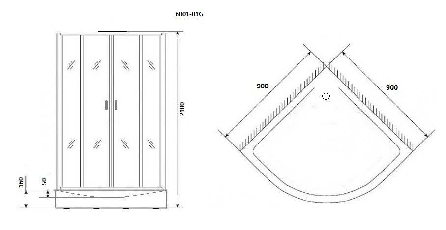 • Душевые кабины угловые симметричные