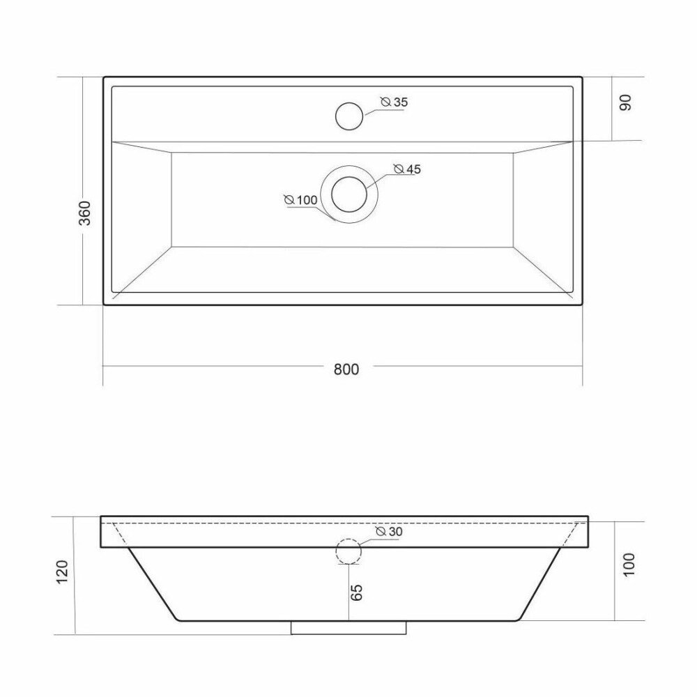Размер раковины составляет Ш800±2 × Г360±2 × В120±2 мм, что делает её универсальным решением для ванных комнат средней и большой площади.