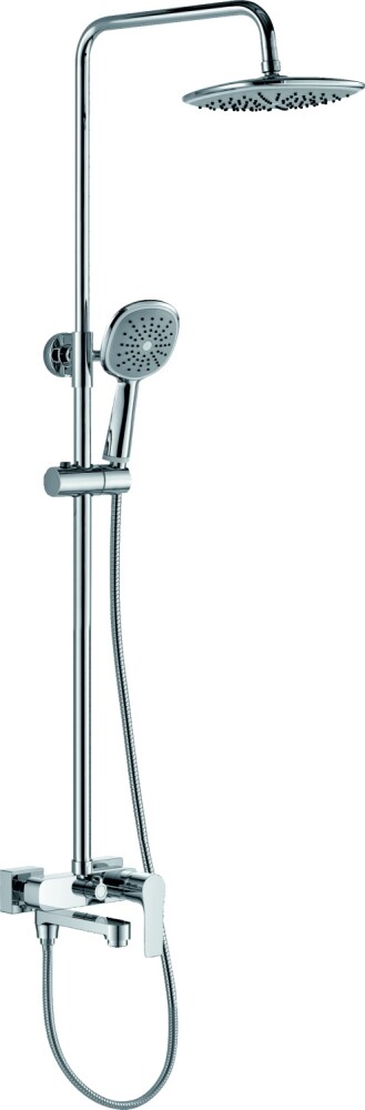 1- режимная душевая лейка. 1-режимный тропический душ. изготовленный из современной прочной пластмассы с никель-хромированным покрытием. душевая штанга раздвижная. держатель душевой лейки поворотный. душевой шланг с латунными гайками 150см. смеситель. индивидуальный пакет. паспорт. гарантийный талон.
