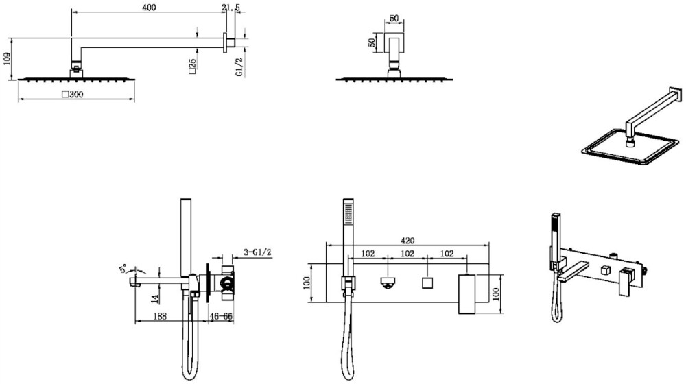 смеситель . шланг . держатель . лейка . верхний душ . излив