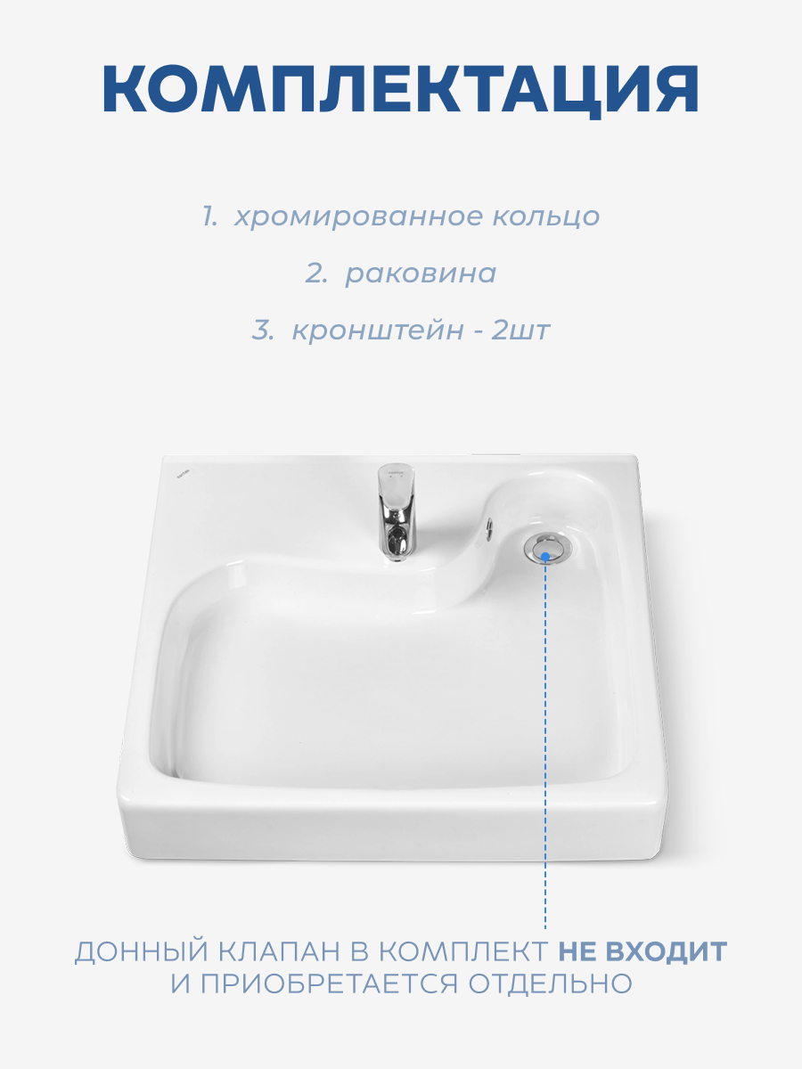 Комментарий: Аккуратная, компактная и стильная раковина для ванной. Монтаж не сложный. Выглядит отлично, моется легко. Слив подошел самый обычный, купленный в Леруа. Единственное бы порекомендовал покупать смеситель пониже, чтобы сильно вода не разбрызгивалась. Раковина не большая.
