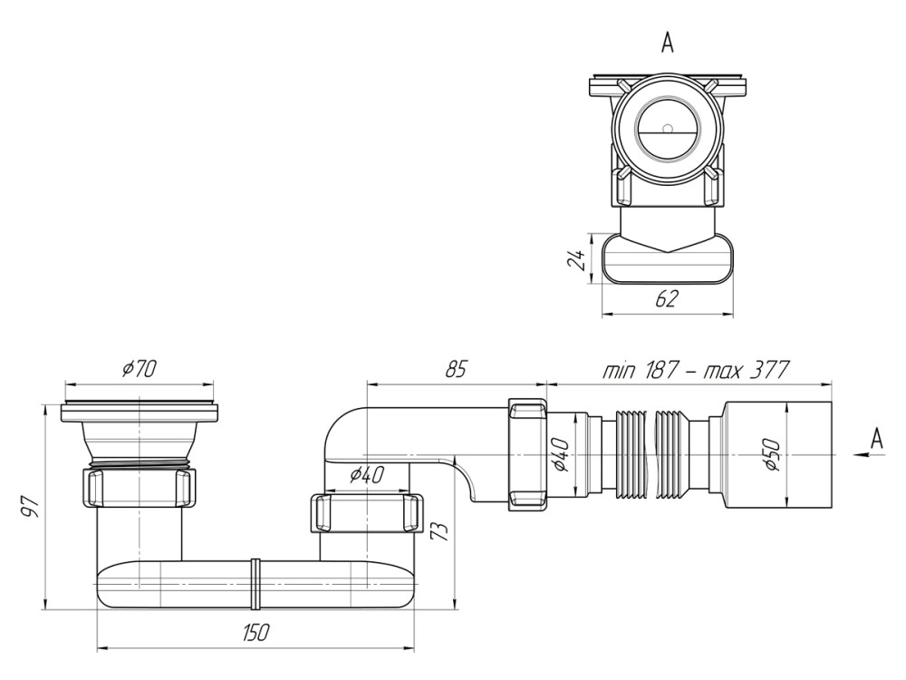 сифон с выпуском.гофротруба 40х50 мм. упаковка.