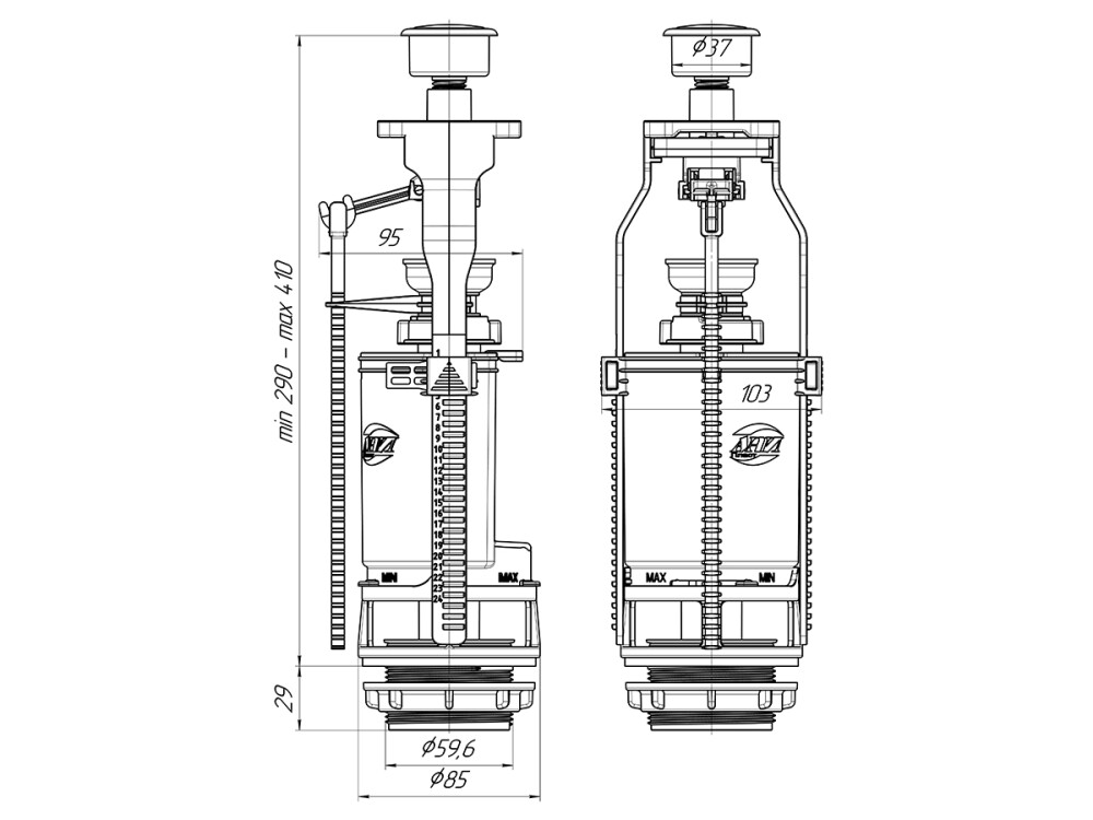 Сливной механизм бачка унитаза АНИ пласт WC7010C хромированная кнопка, с одним режимом слива. Регулировка по высоте 290-410 мм. Отверстие для кнопки слива в крышке бачка 40 мм, посадочное отверстие сливной арматуры 60 мм.Сливная арматура является важным механизмом, необходимым для правильной работы сливного бачка. Изделие произведено из высококачественного пластика, который обеспечивает длительную эксплуатацию без поломок
