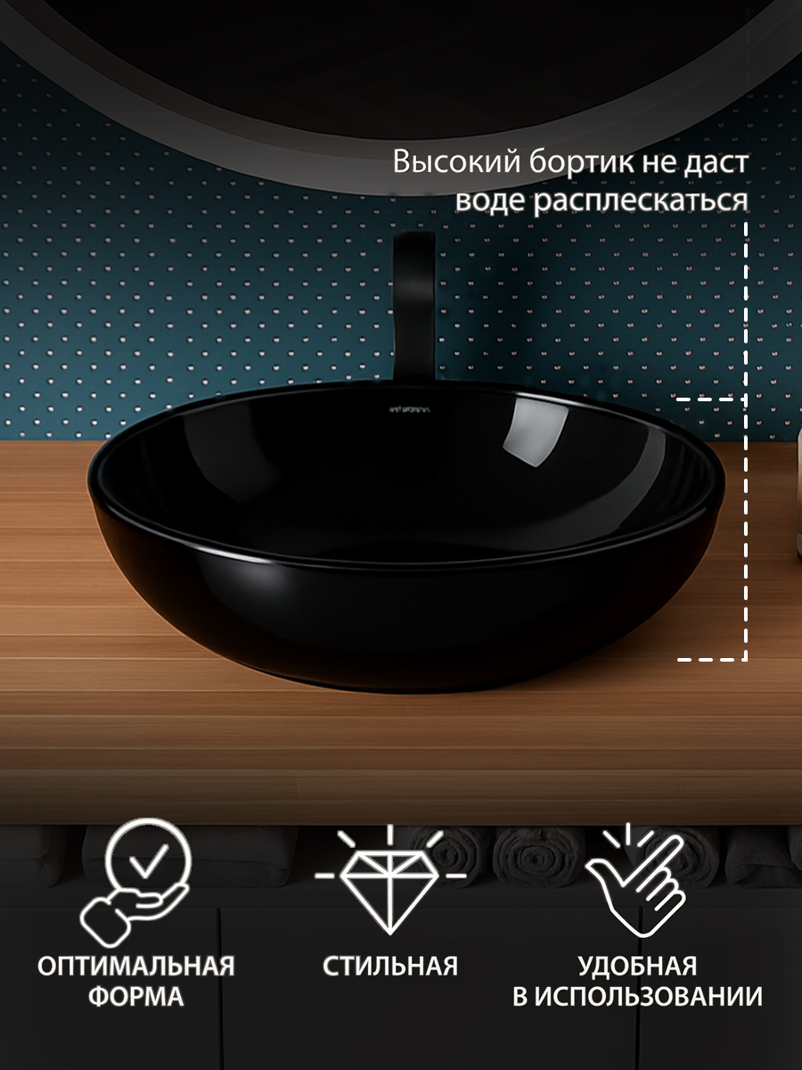 Комментарий: Аккуратная, компактная и стильная раковина для ванной. Монтаж не сложный. Выглядит отлично, моется легко. Слив подошел самый обычный, купленный в Леруа. Единственное бы порекомендовал покупать смеситель пониже, чтобы сильно вода не разбрызгивалась. Раковина не большая.