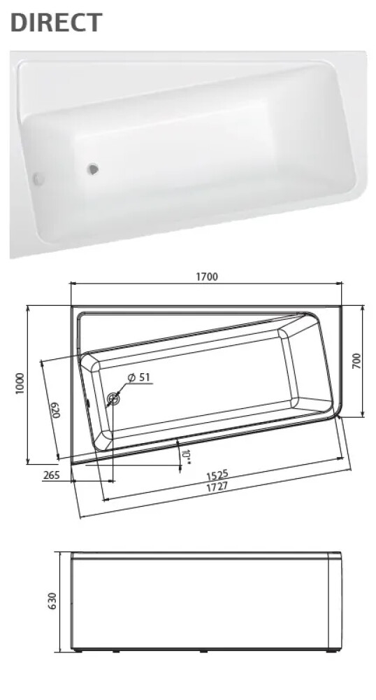 Ванна акриловая асимметричная DIRECT 170х100 R 1MarKa 01дир1710п