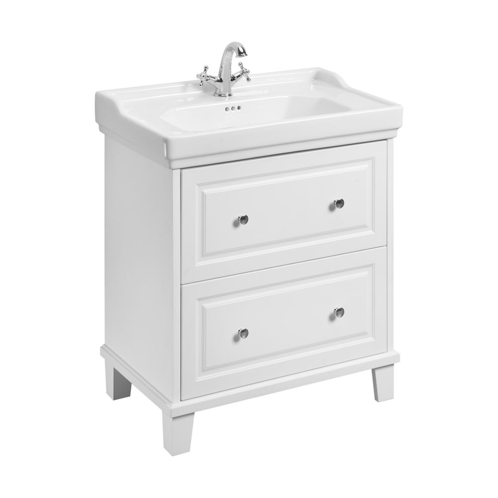 Тумба - 1шт. Фасад - 2 шт, ящик выдвижной - 2 шт (направляющие с интегрированной системой плавного закрывания), опоры - 4 шт, организация пространства -2 шт, сифон - 1 шт, ручка - 4 шт.