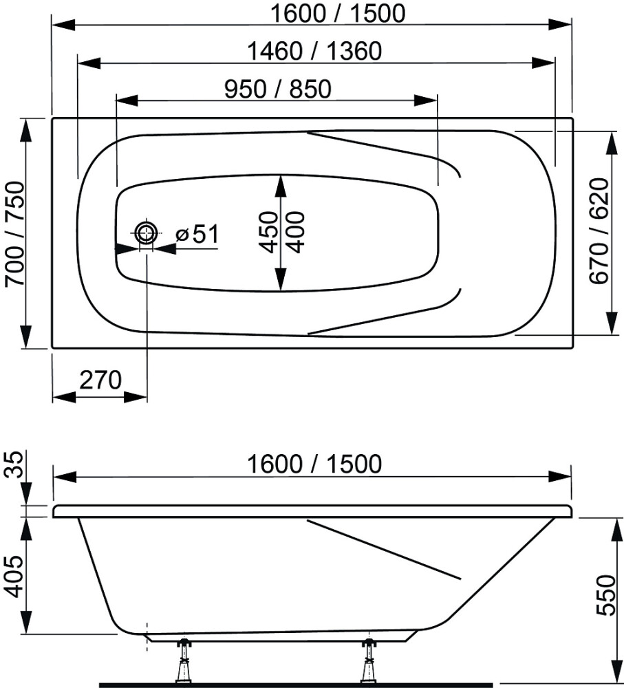 • Форма ванны