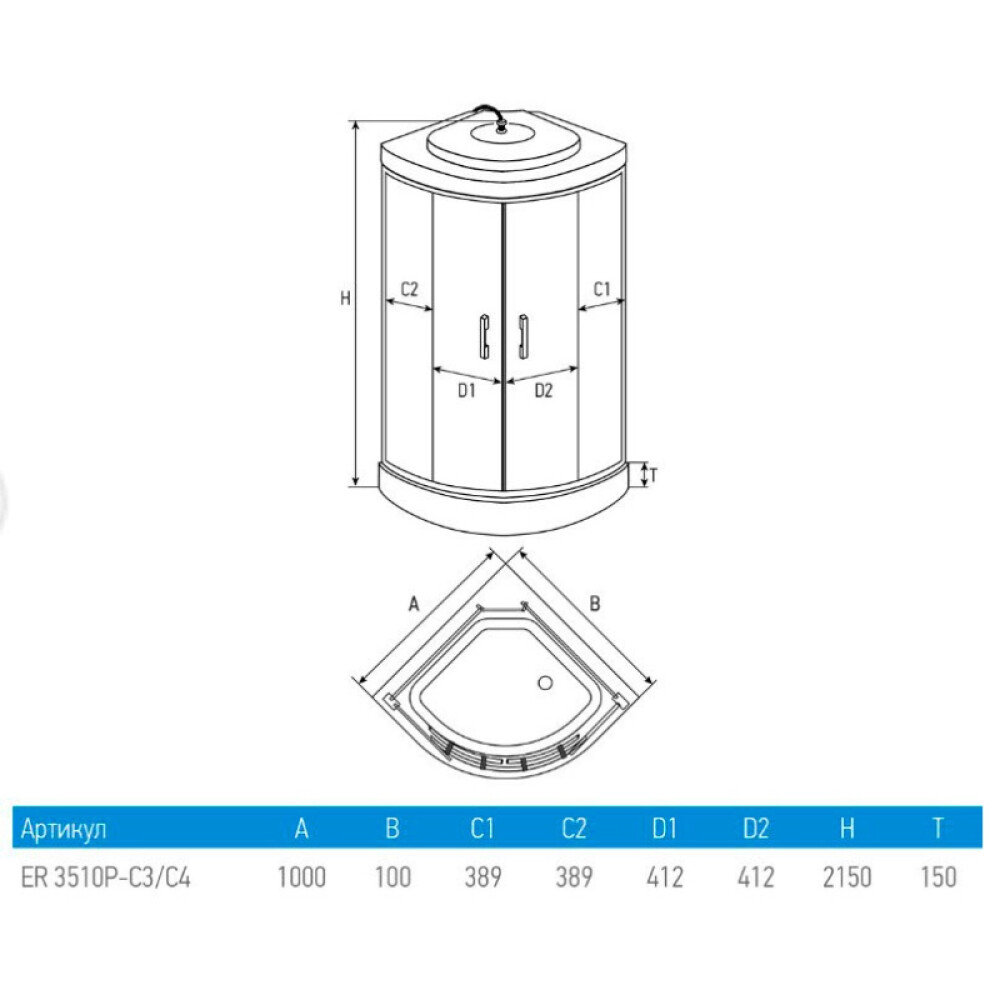 • Душевые кабины угловые симметричные