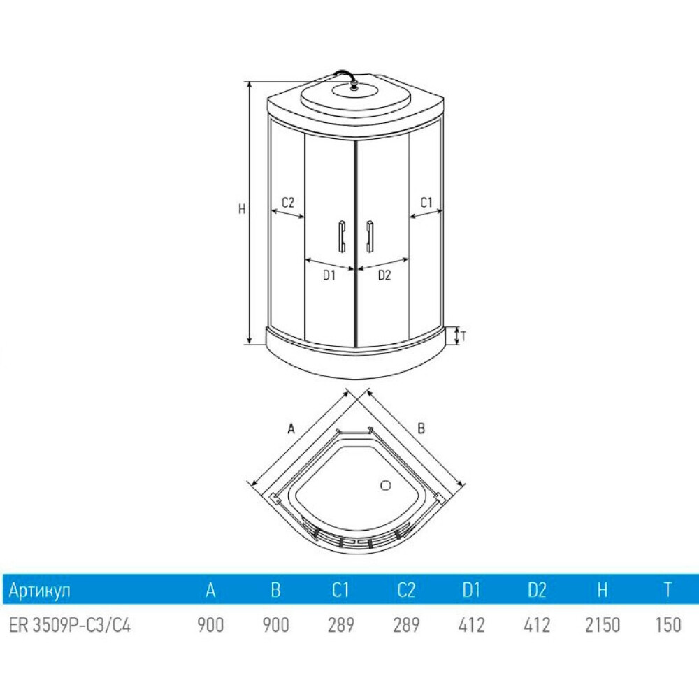 • Душевые кабины угловые симметричные