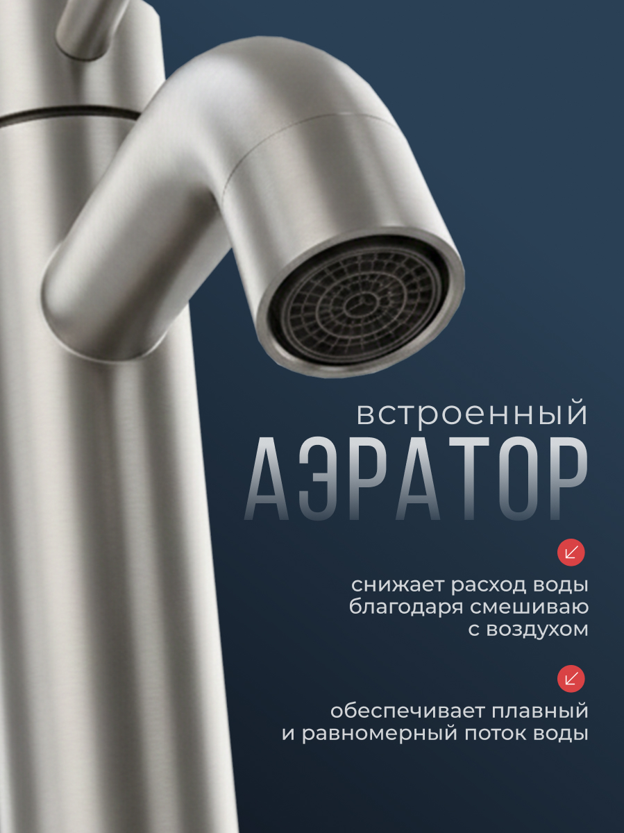 Достоинства: Очень качественно сделан, даже когда открываешь упаковку, кажется что у тебя в руках кран не за три с небольшим тысячи, а тысяч за 10. Ручки вращаются очень мягко и плавно. Теперь для фильтрованой воды не нужен отдельный кран. В комплекте есть всё необходимое, даже переходник для шланга от фильтра Недостатки: При установке немного помчался с подключением шлангов к самому крану. Очень глубоко сделаны отверстия, ключ тела не лезет, чтобы качественно затянуть шланги. Комментарий: В общем смотрится хорошо, размер тоже порадовал, высокий. У меня кран льёт чётко в центр раковины.