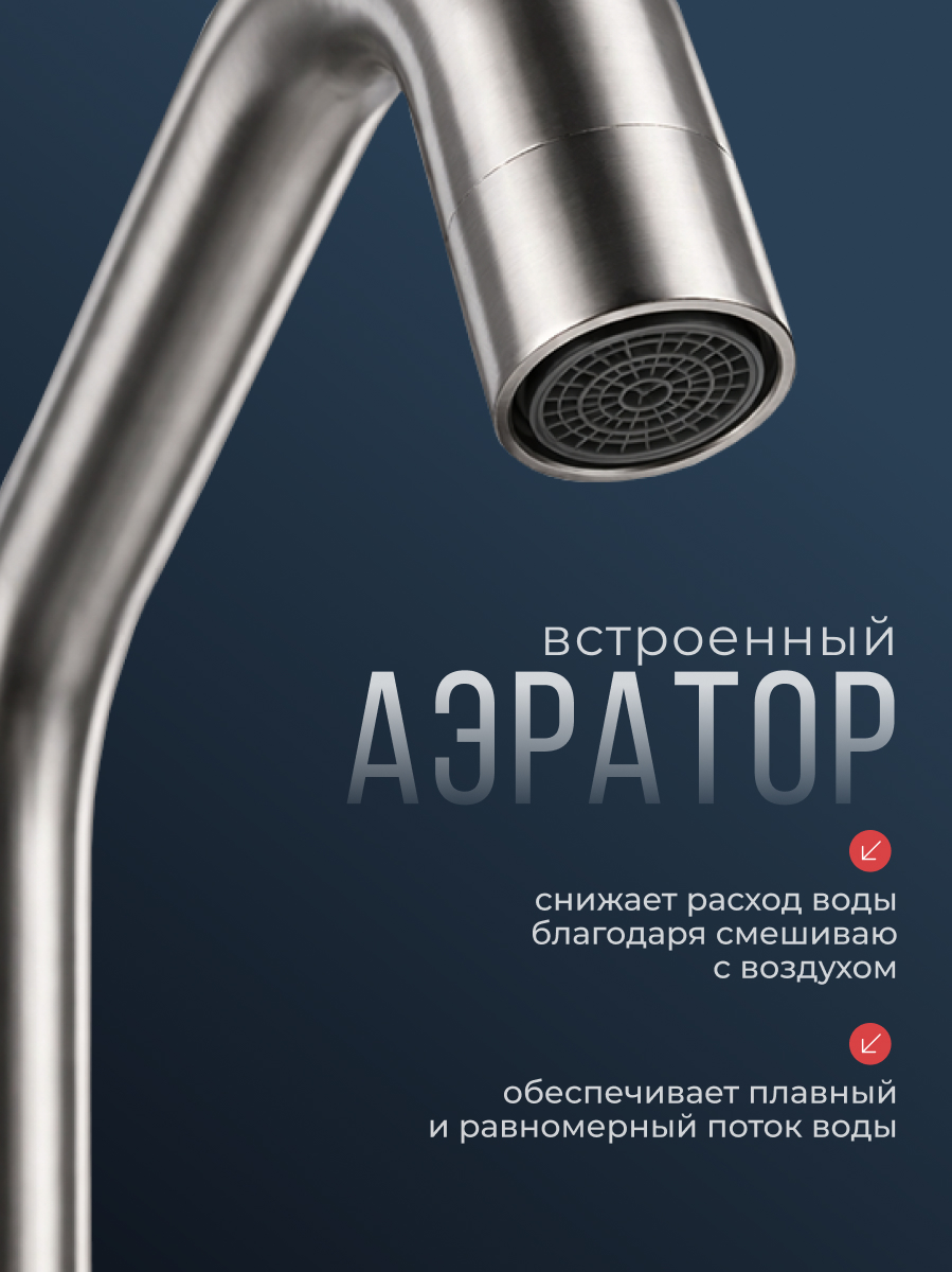 Достоинства: Очень качественно сделан, даже когда открываешь упаковку, кажется что у тебя в руках кран не за три с небольшим тысячи, а тысяч за 10. Ручки вращаются очень мягко и плавно. Теперь для фильтрованой воды не нужен отдельный кран. В комплекте есть всё необходимое, даже переходник для шланга от фильтра Недостатки: При установке немного помчался с подключением шлангов к самому крану. Очень глубоко сделаны отверстия, ключ тела не лезет, чтобы качественно затянуть шланги. Комментарий: В общем смотрится хорошо, размер тоже порадовал, высокий. У меня кран льёт чётко в центр раковины.