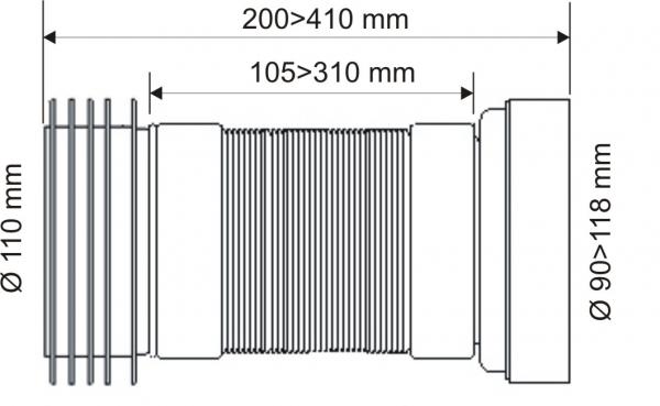 Фановая раздвижная (L200-330мм) гофрированная труба с манжетой; вход Ду=97-107мм; выход вставляется внутрь 4"/110мм трубы
